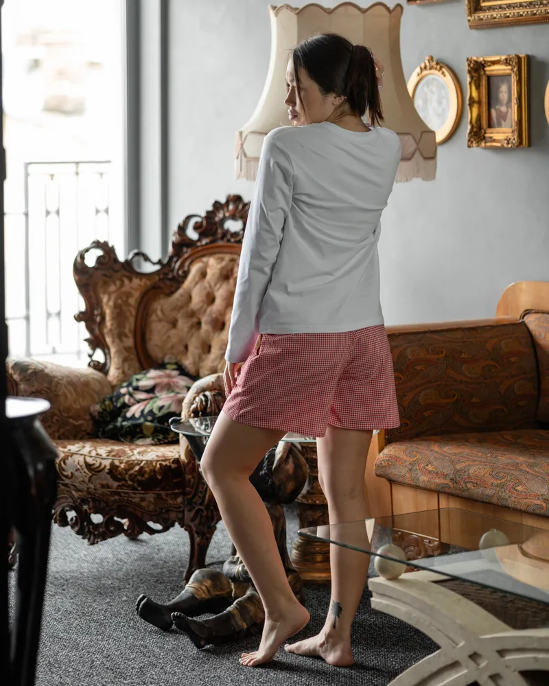 Комплект: тоненький лонгслів вільного крою та короткі шорти на резинці з кишенями.