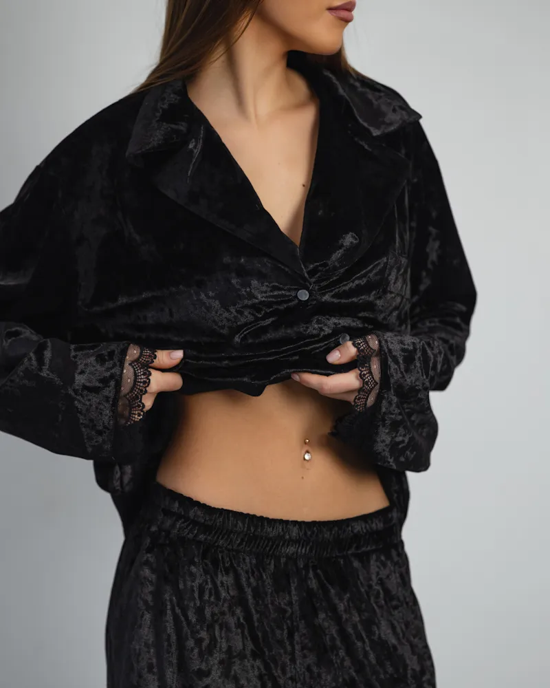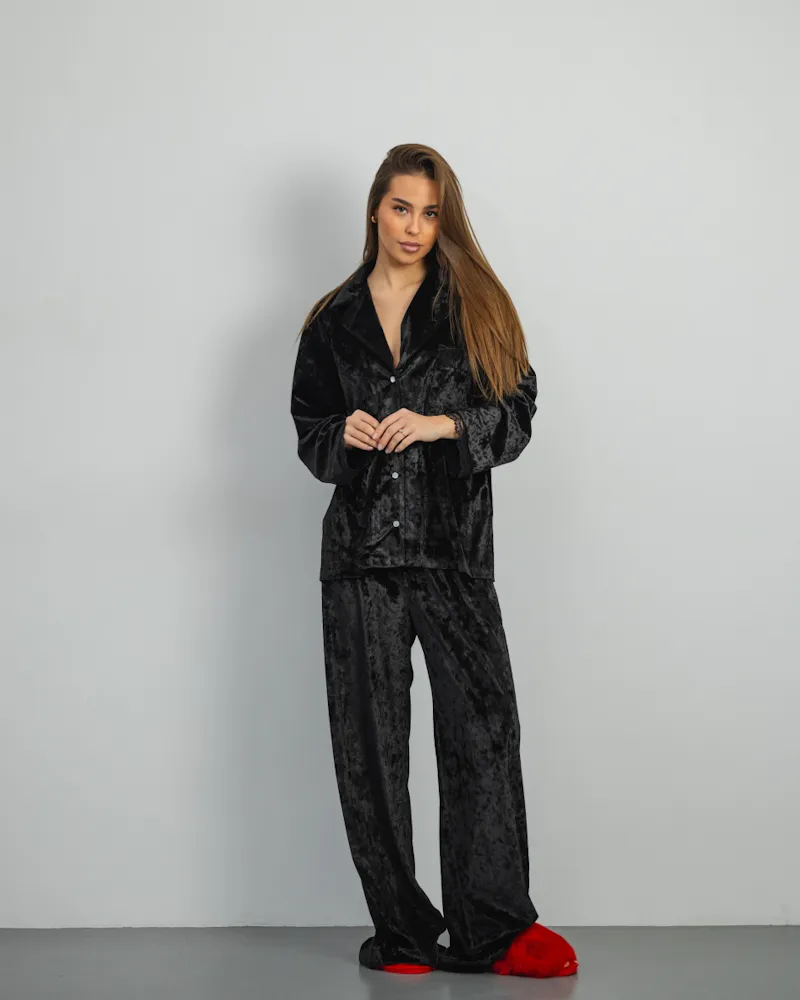 Піжама "Vella" мармуровий велюр + мереживо Чорний