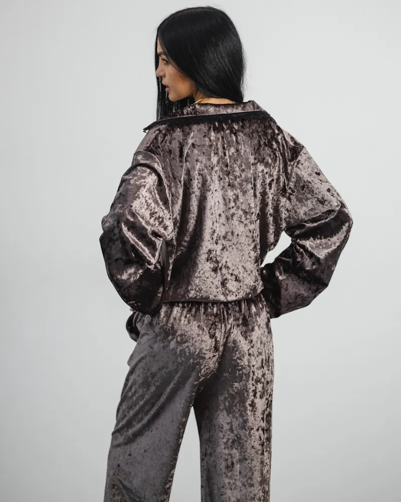 Піжама "Vella" мармуровий велюр + мереживо Коричневий