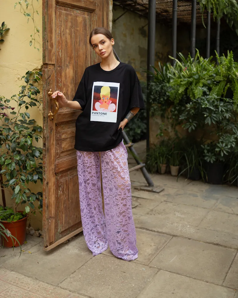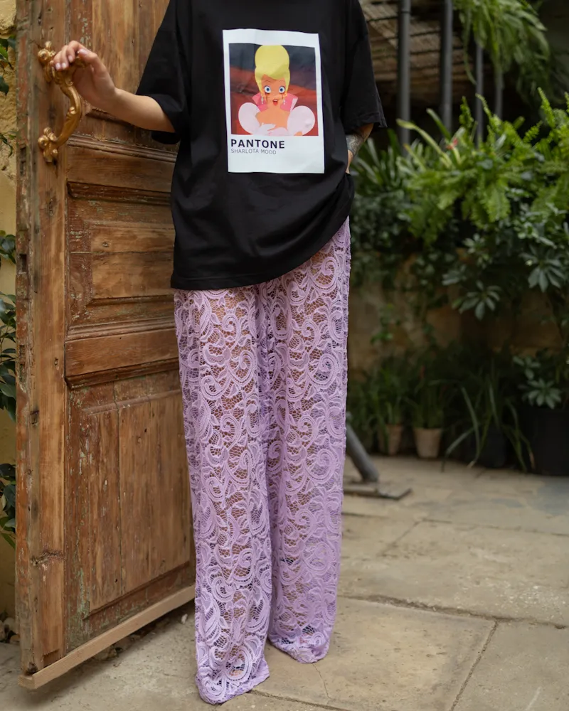 Штани з тканини мереживо Фіолетовий
