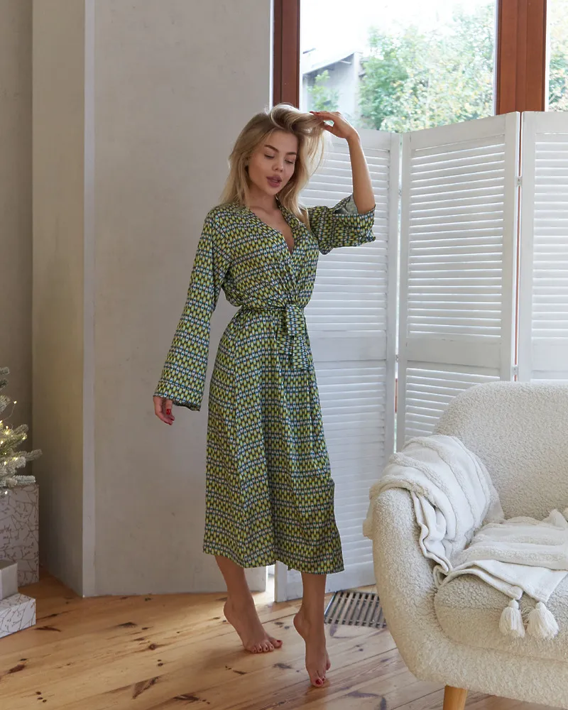 Піжамний костюм-трійка Siera (халат+шорти+топ) Салатовий