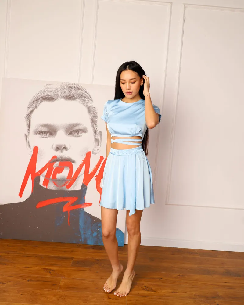 Костюм з Шовку Армані (спідниця + топ) "Xena" Блакитний
