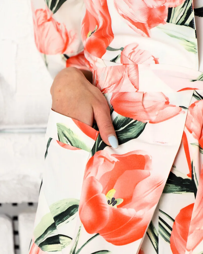 Яскравий жіночий костюм із тканини софт у квітковий принт.