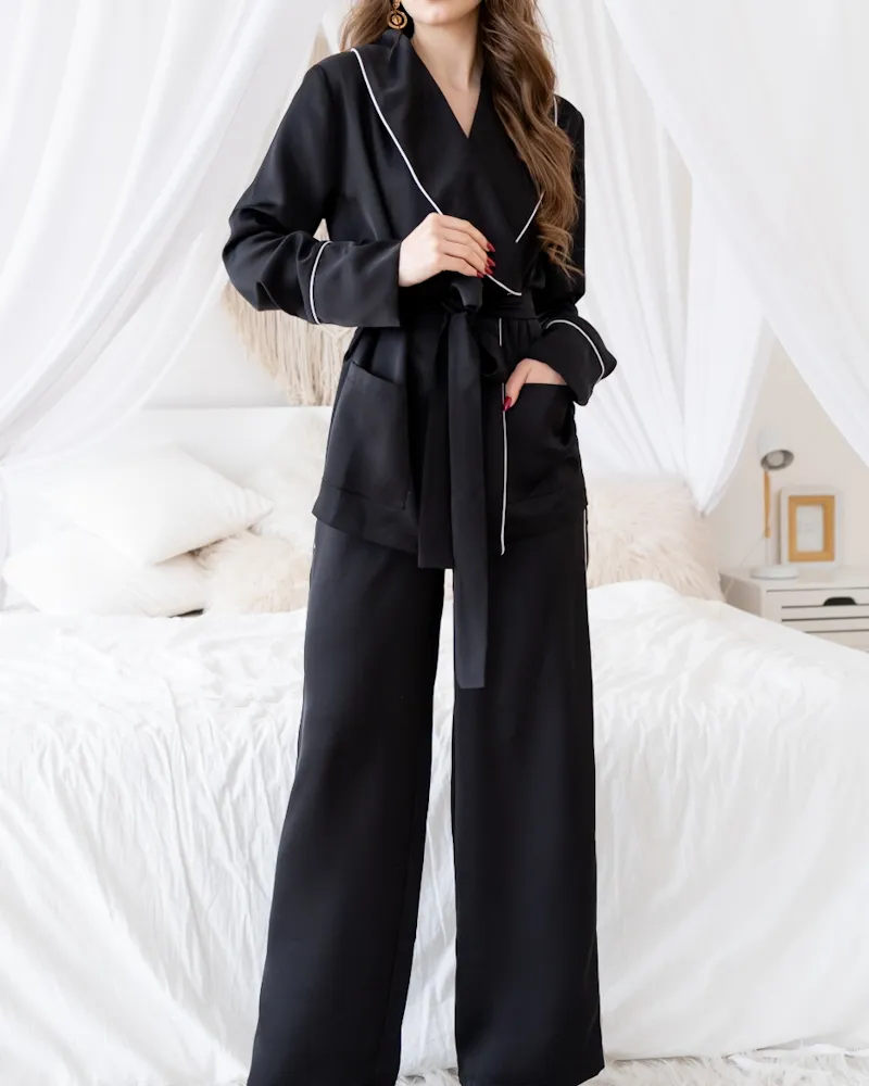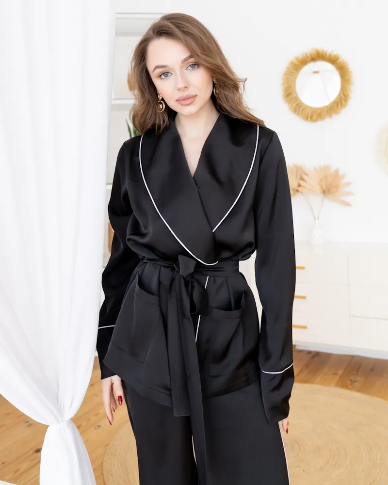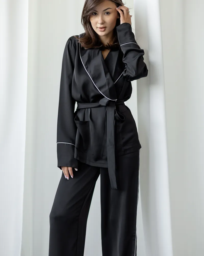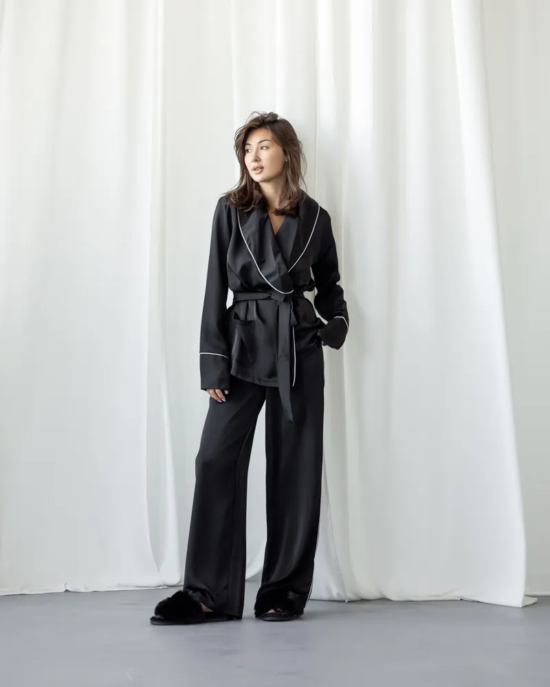 Головна / Каталог / Жінкам / Піжамний костюм / Костюм в піжамному стилі "Estelle" Чорний