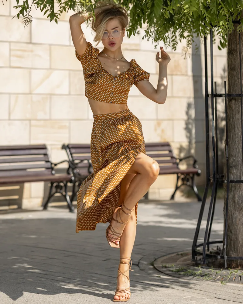 Головна / Каталог / Жінкам / Сукні / Костюм Спідниця + Топ "Alisha" золотий