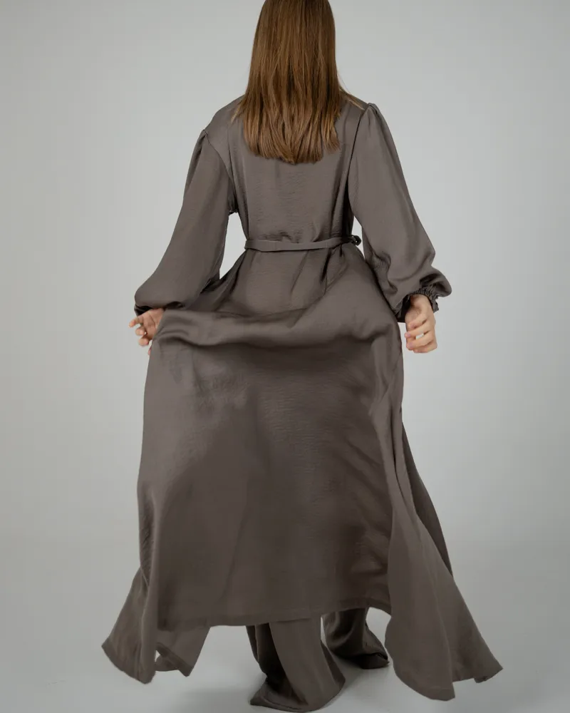 Піжамний костюм-трійка Diana шовк віскоза (бра+халат+штани) Хакі
