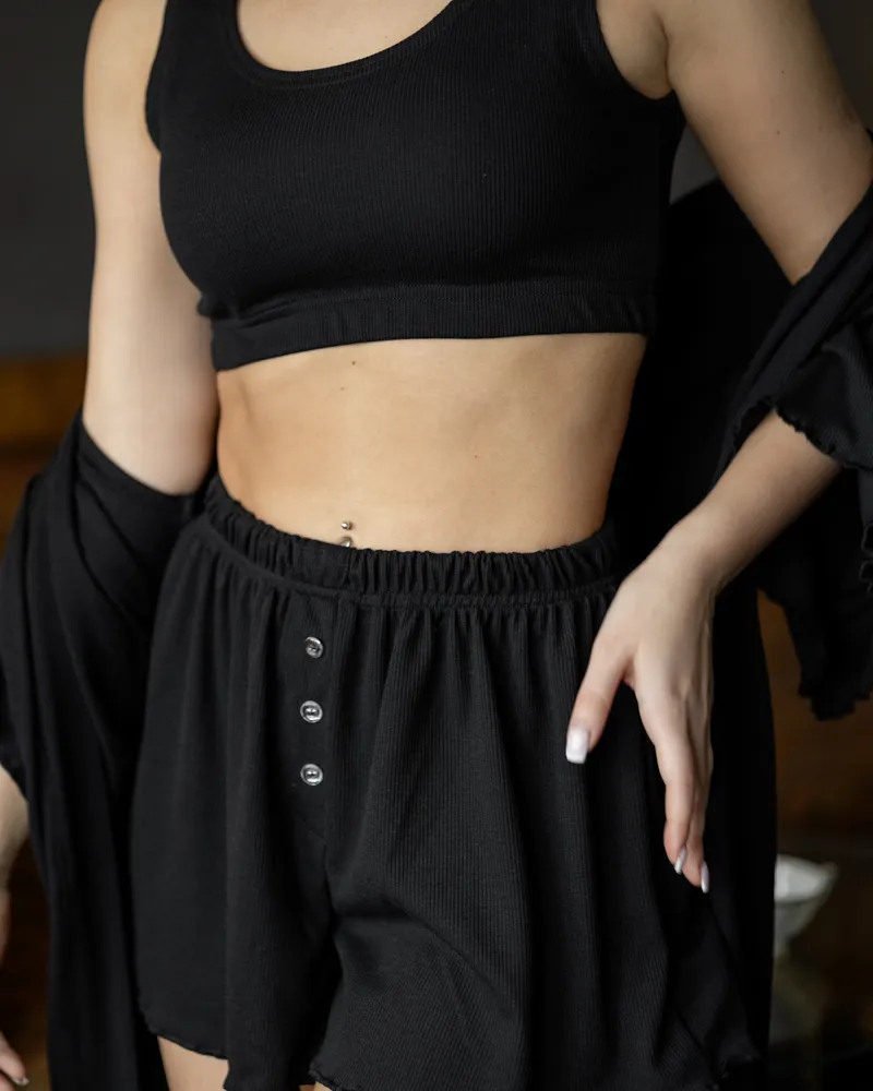 Піжамний костюм трійка з рубчика Dana (халат+топ+шорти) Чорний