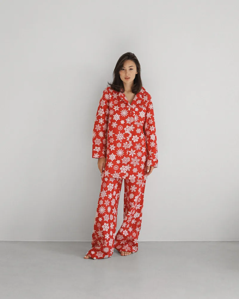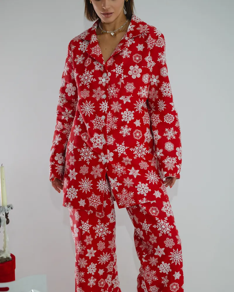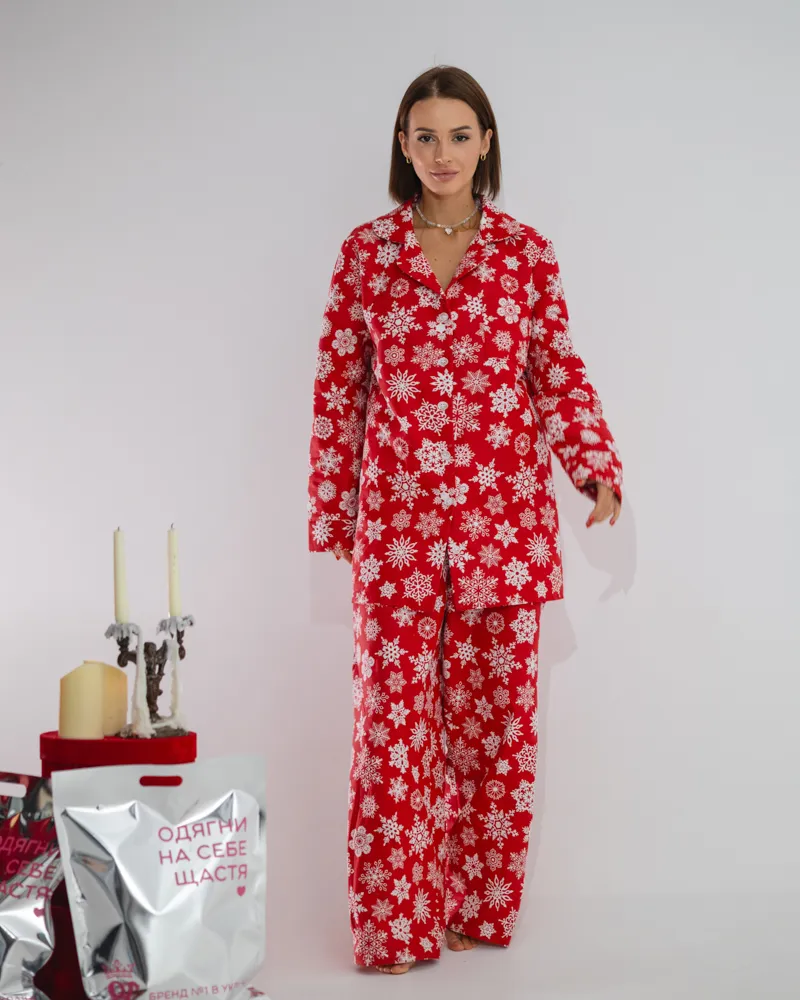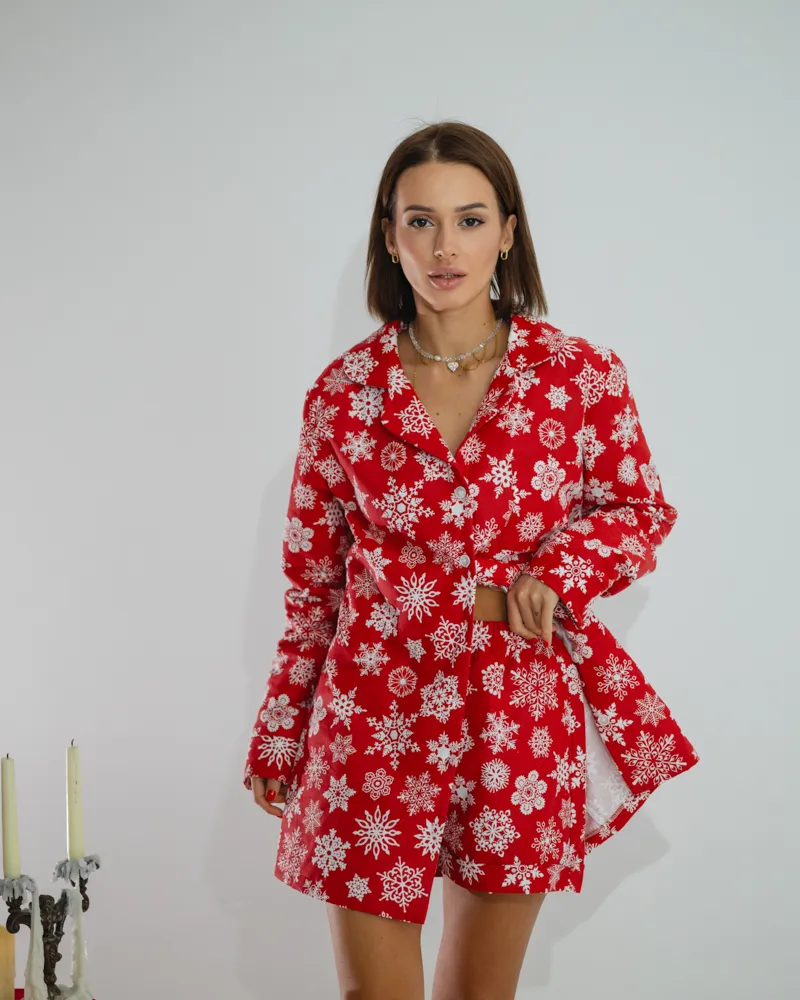 Головна / Каталог / Жінкам / Піжамний костюм / Піжамний костюм-трійка з байки "Holiday" Червоний