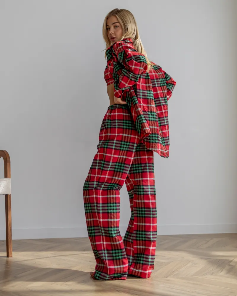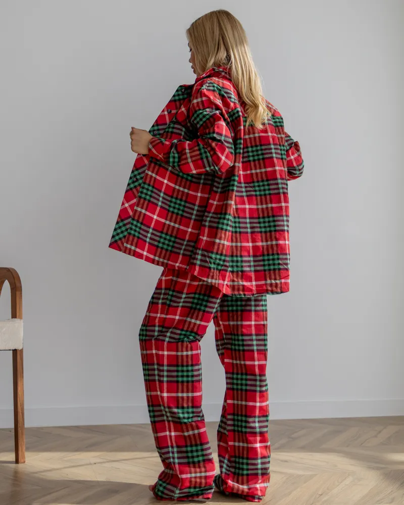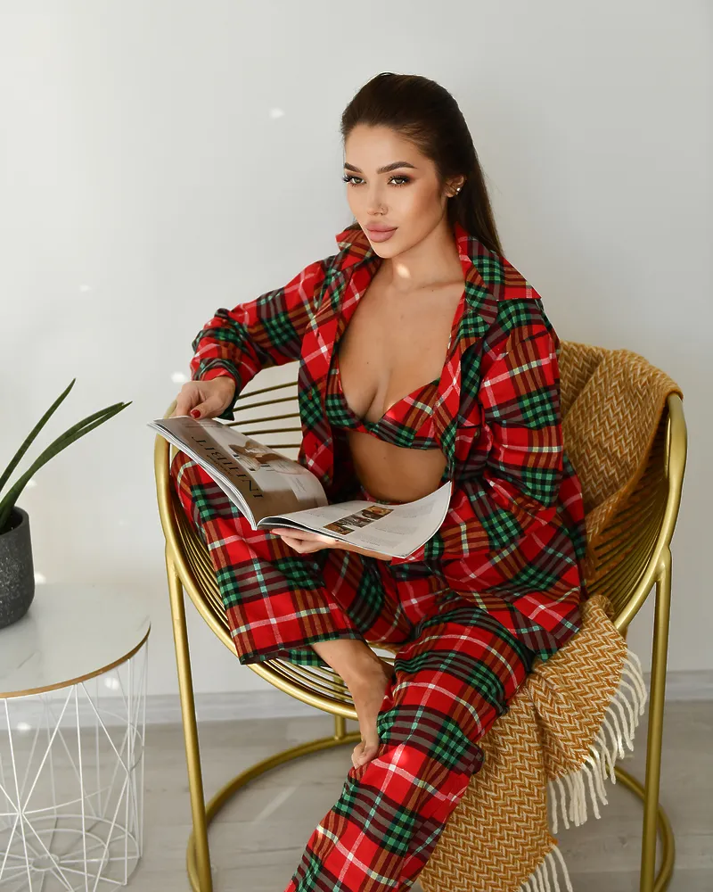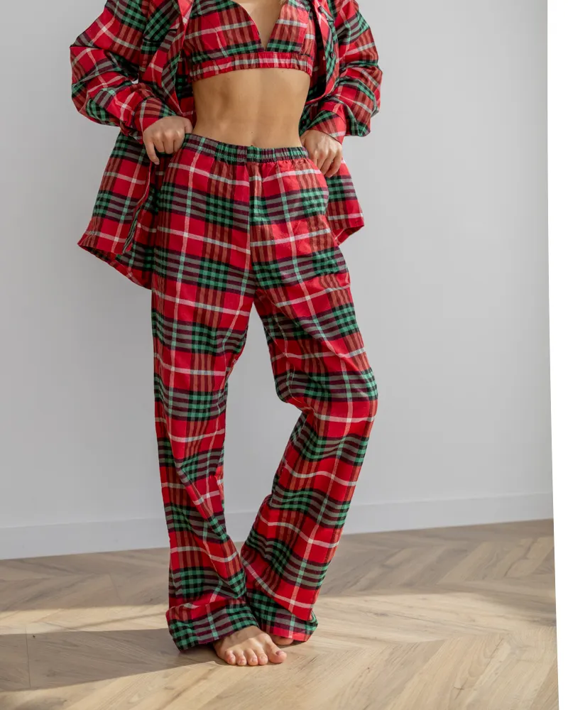 Головна / Каталог / Жінкам / Піжамний костюм / Піжамний костюм трійка з байки Vanessa (Сорочка+Бра+Штани) Червоно-Зелений