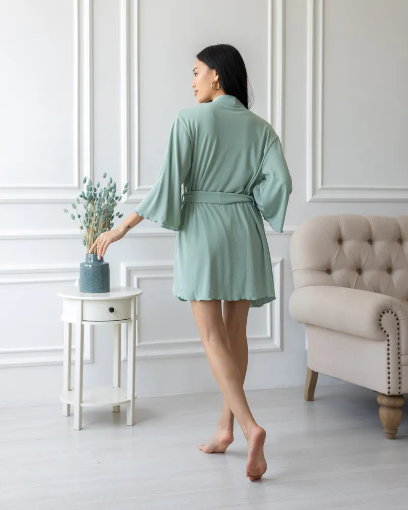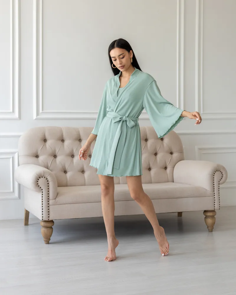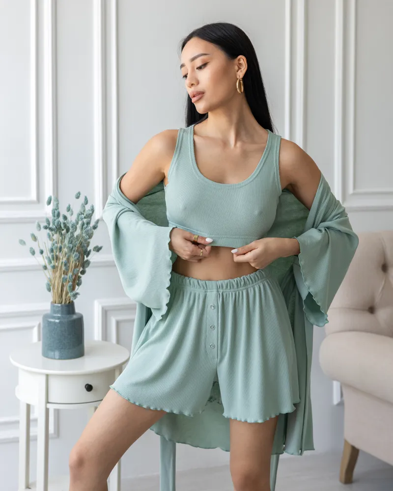 Піжамний костюм трійка з рубчика Dana (халат+топ+шорти) Фісташковий