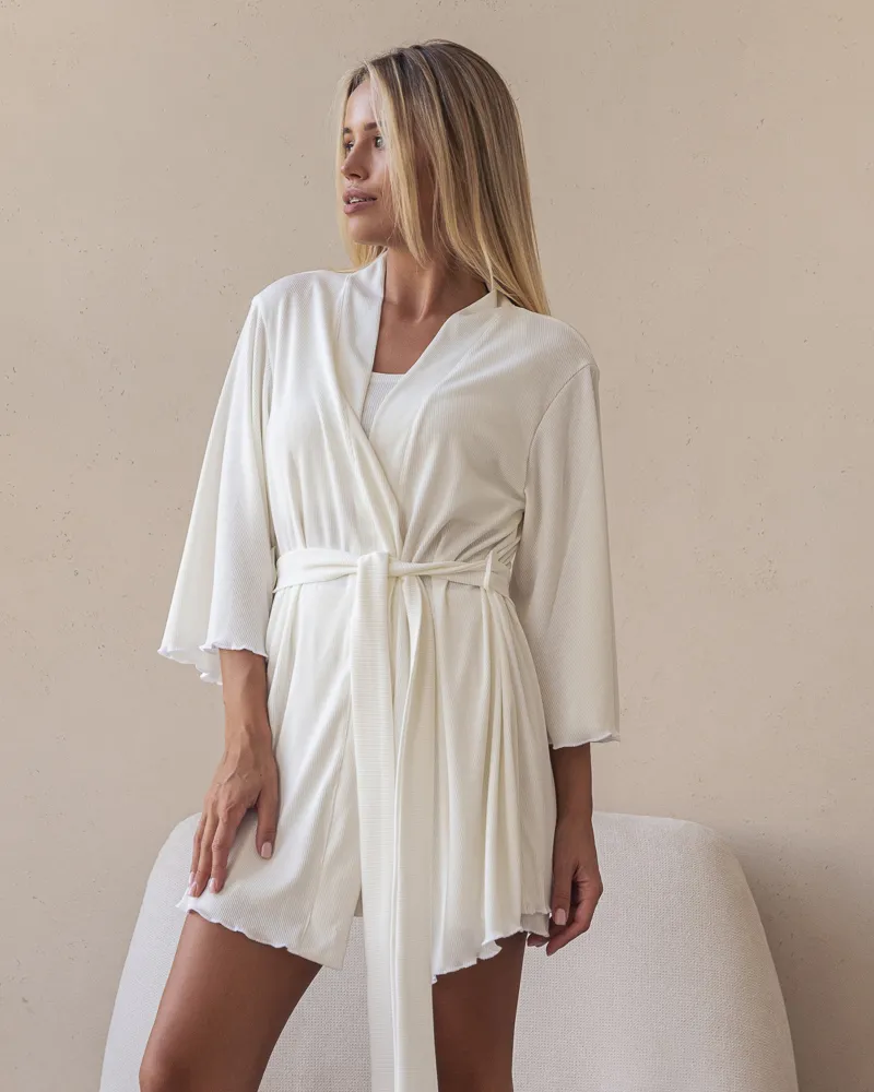 Піжамний костюм трійка з рубчика Dana (халат+топ+шорти) Білий
