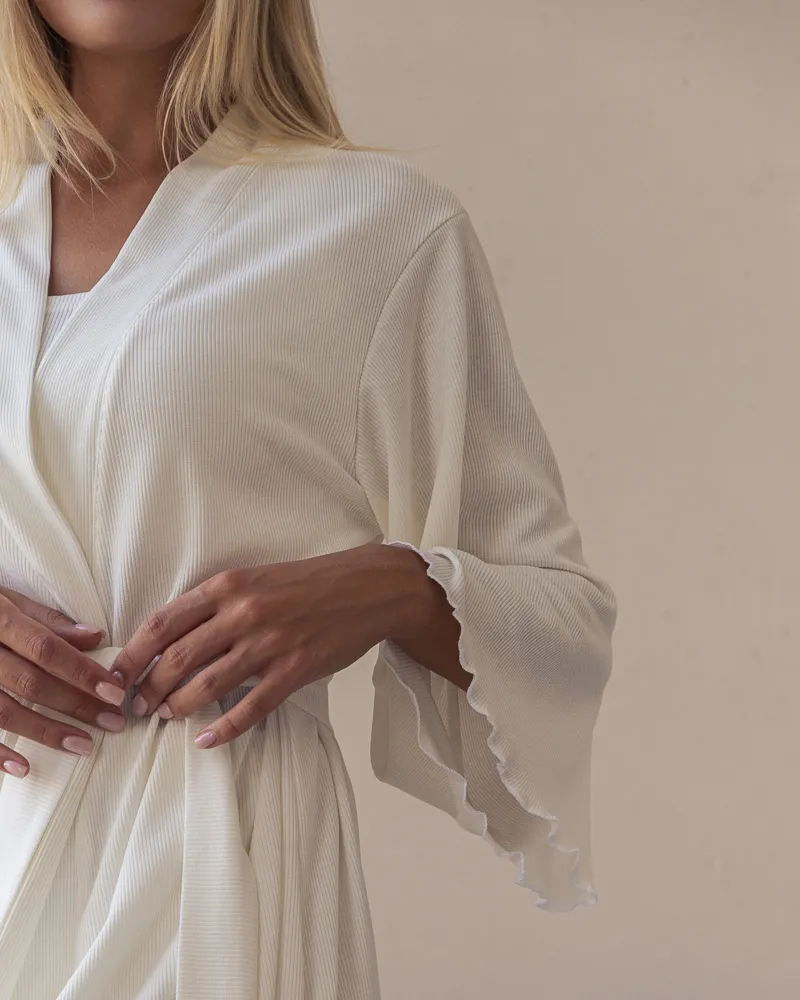 Головна / Каталог / Жінкам / Піжамний костюм / Піжамний костюм трійка з рубчика Dana (халат+топ+шорти) Білий