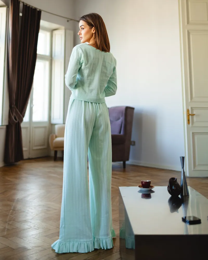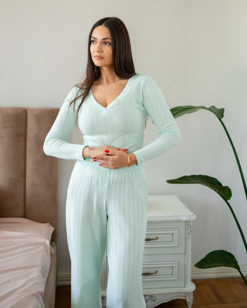Піжамний костюм-трійка "Nicoletta" (кофта+шорти+штани) тканина трикотаж М'ятний