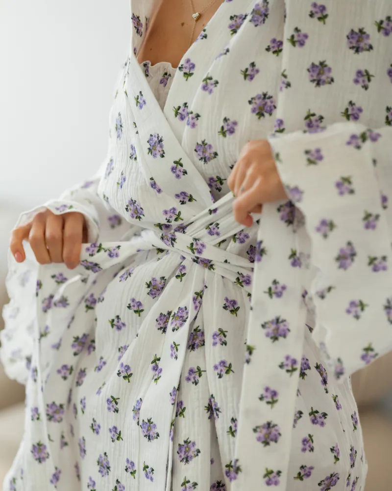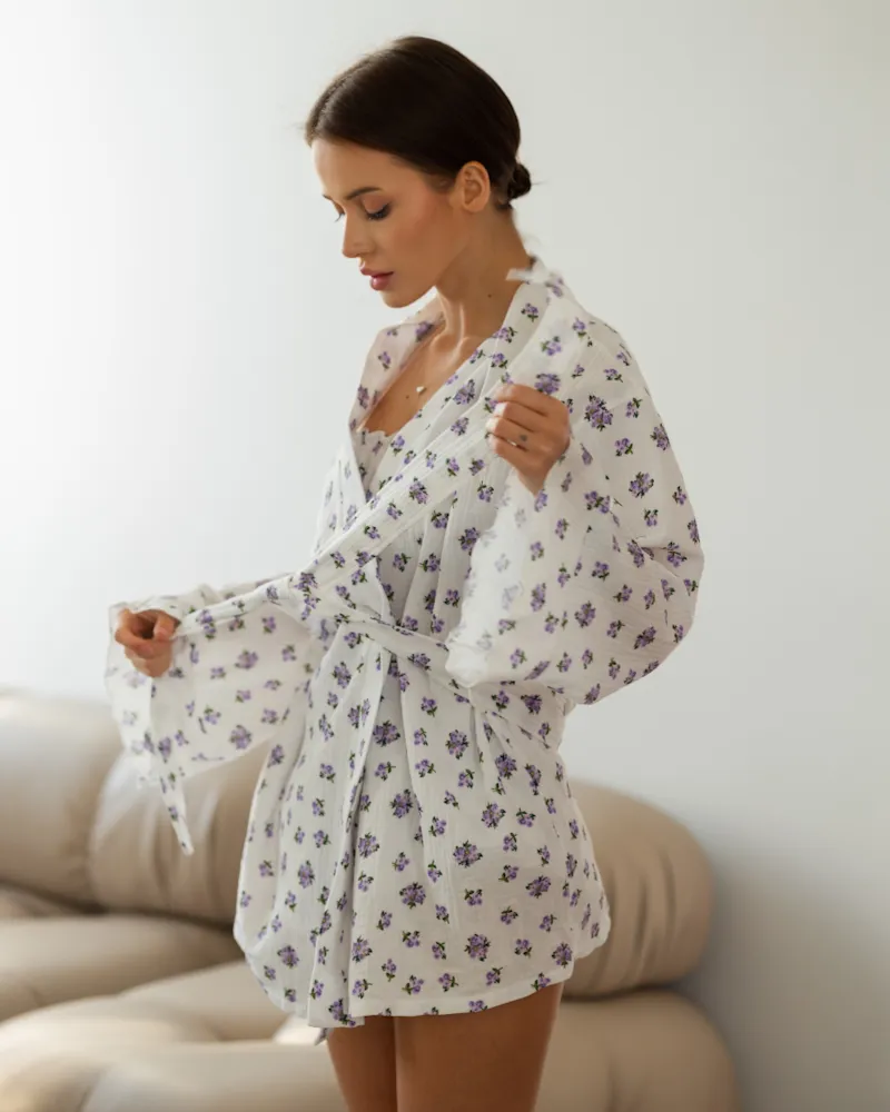 Піжамний костюм-трійка "Rose" (халат+топ+шорти) муслін Ліловий