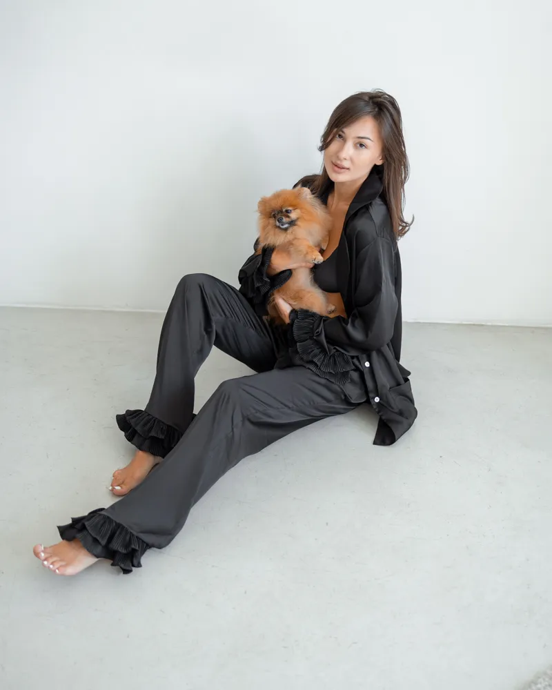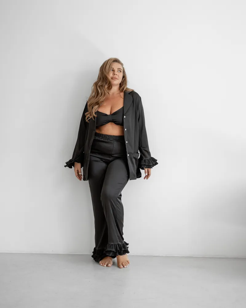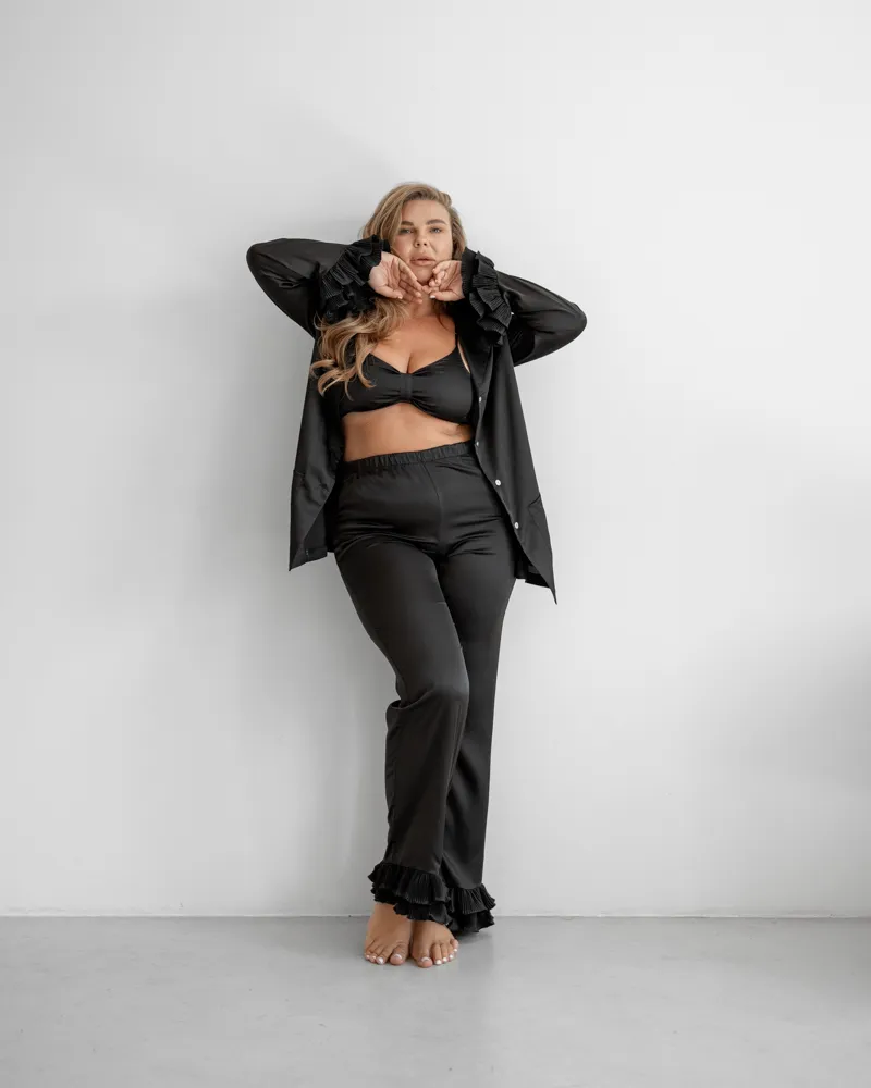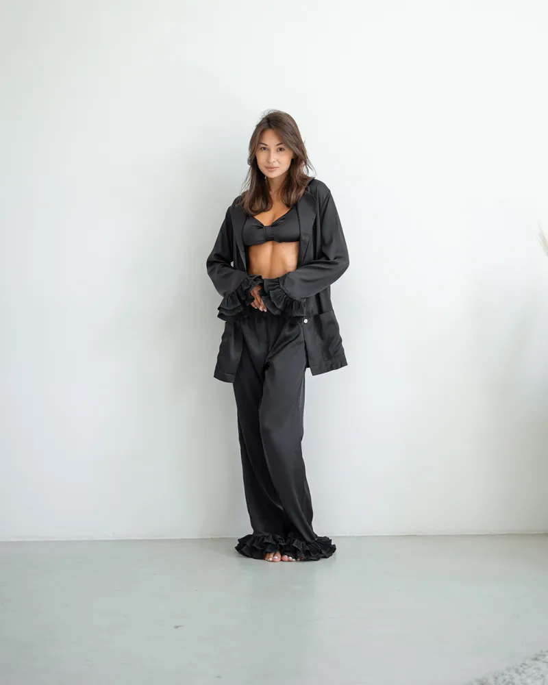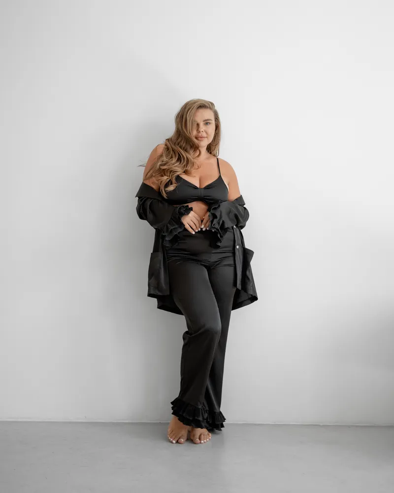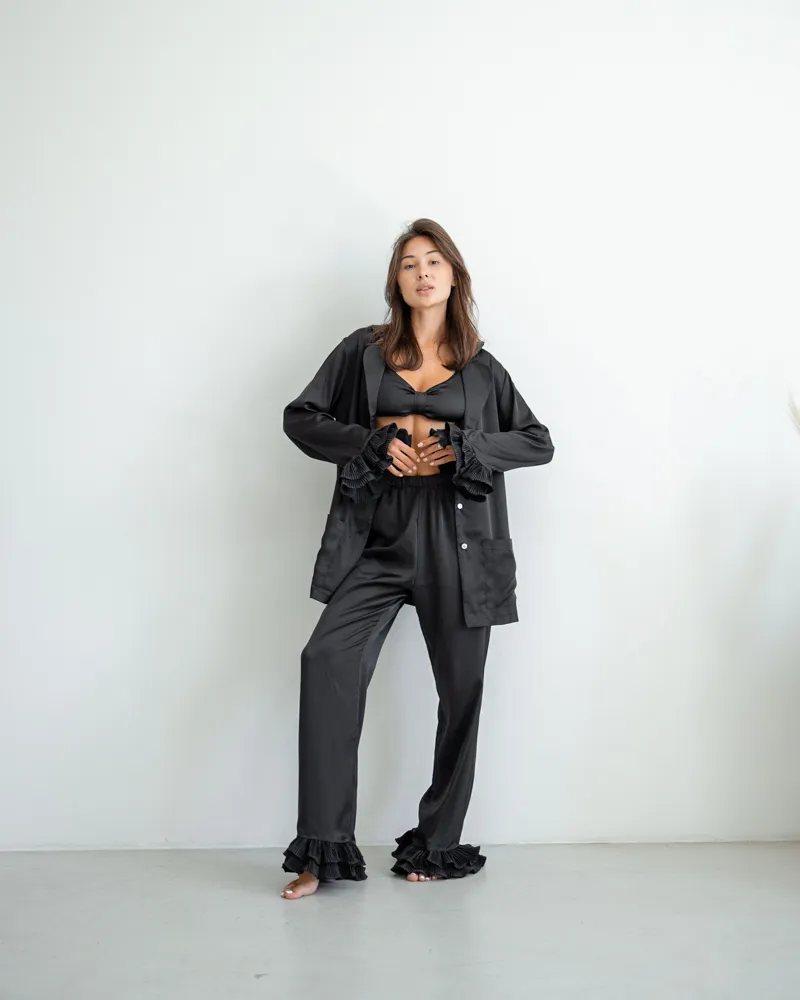 Піжамний костюм-трійка "Volan" (сорочка+бра+штани) Чорний