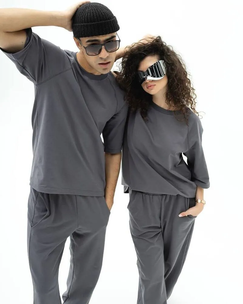 Спортивний костюм-двійка "Кука" (футболка+штани) двонитка петля Сірий