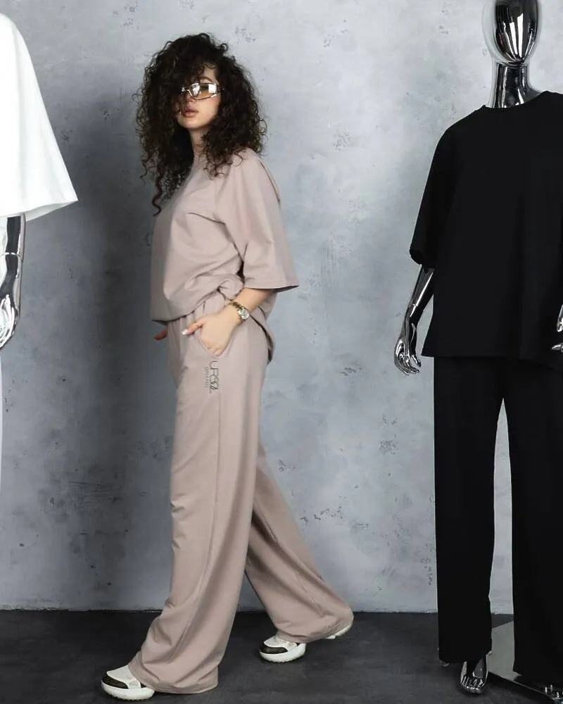 Головна / Каталог / Жінкам / Спорт / Спортивний костюм-двійка "Кука" (футболка+штани) двонитка петля Мокко
