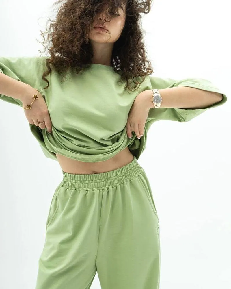 Головна / Каталог / Жінкам / Спорт / Спортивний костюм-двійка "Кука" (футболка+штани) двонитка петля Оливка
