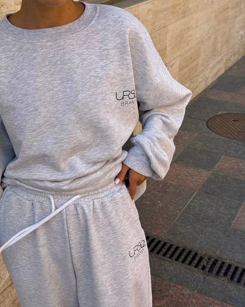Комплект: вільний світшот із манжетами та прямого крою штани на резинці зі шнурком та кишенями.