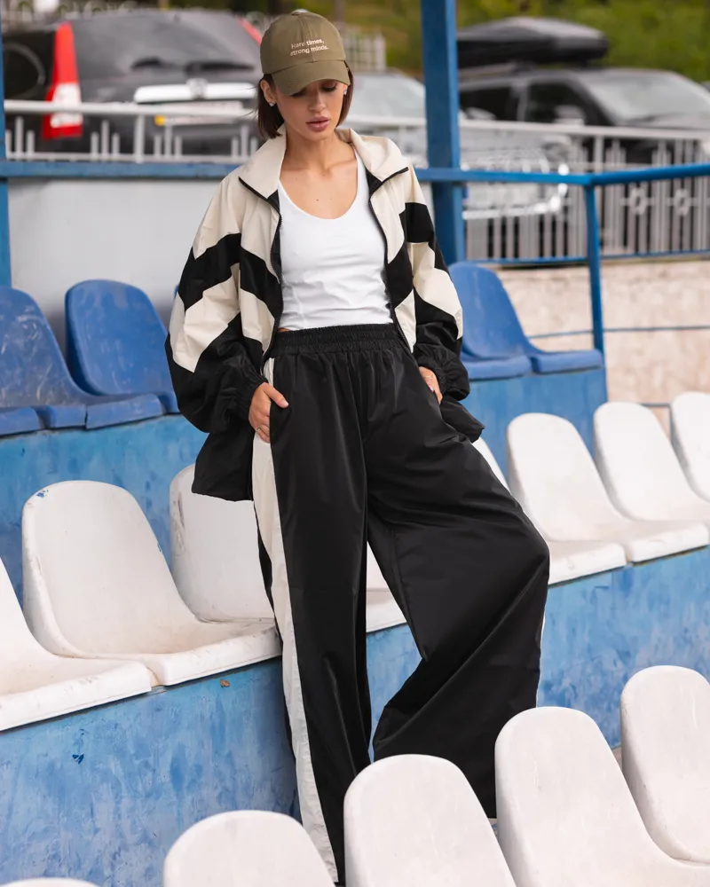 Представляємо Вам нашу надзвичайно стильну новинку на весну-осінь! Це жіночий спортивний костюм в ретро стилі із тканини плащівка, який стане улюбленою частиною Вашого гардеробу.