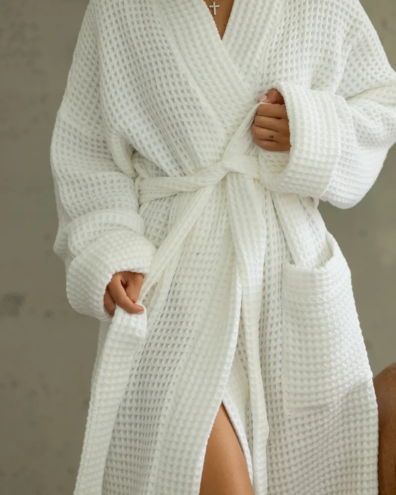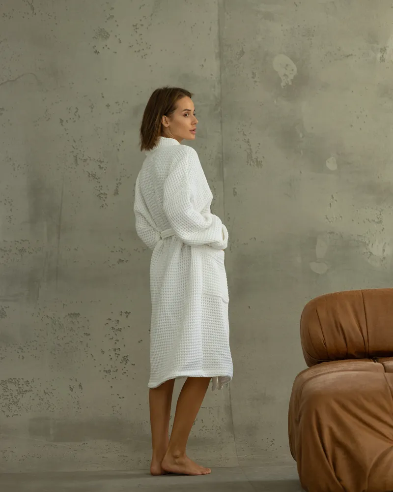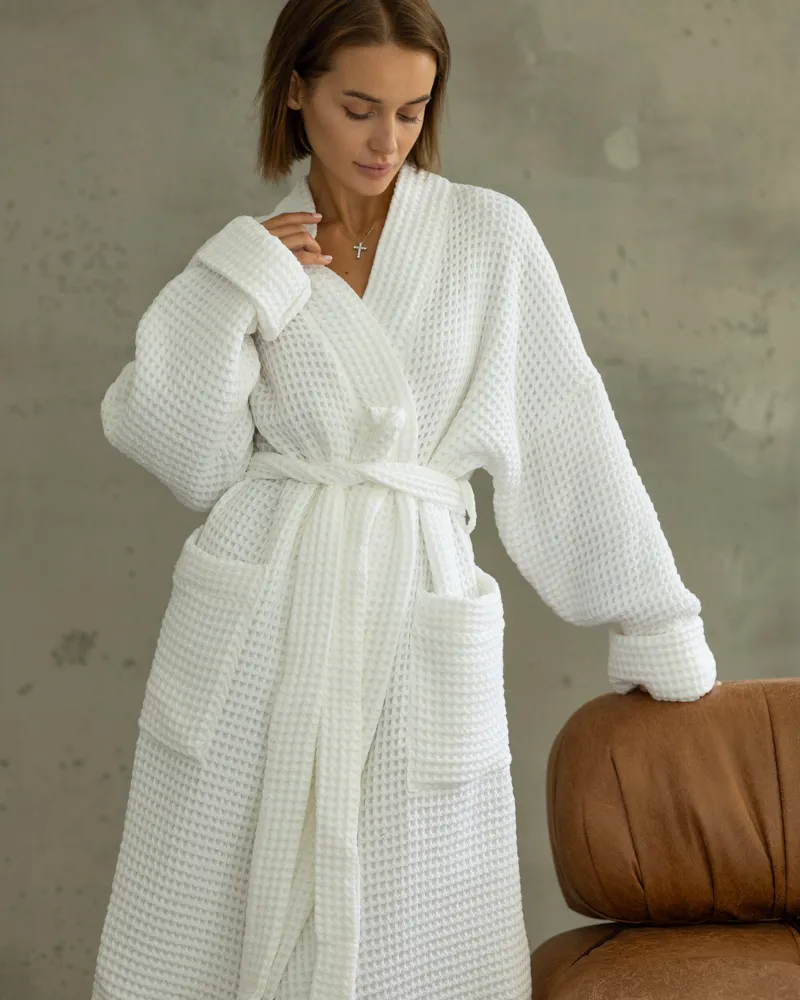 Натуральний якісний бавовняний халат із тканини вафля.