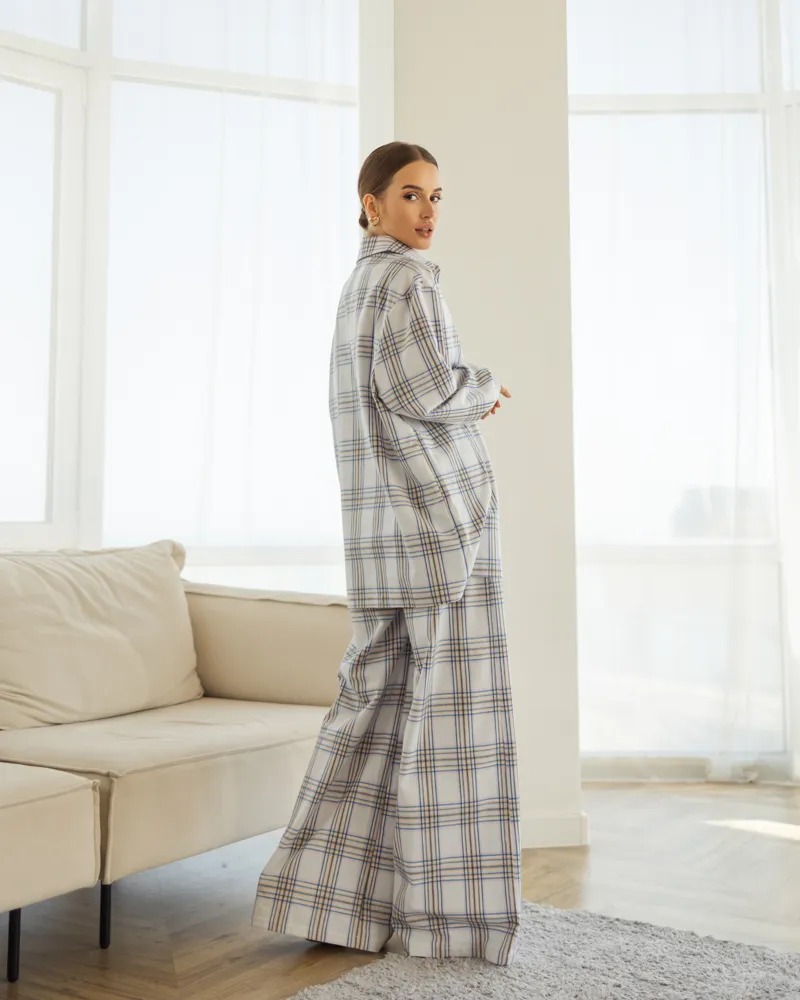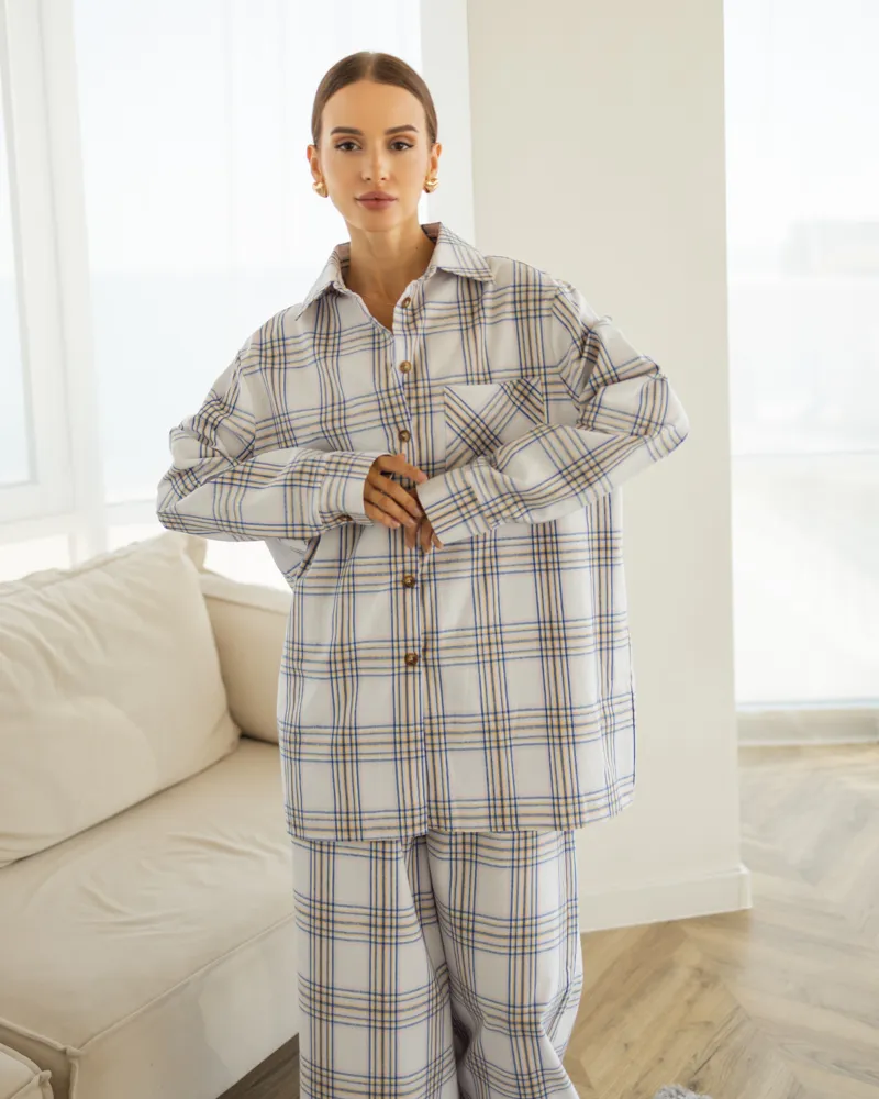 Жіноча піжама в клітинку з якісної турецької тканини байка.