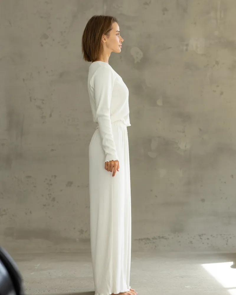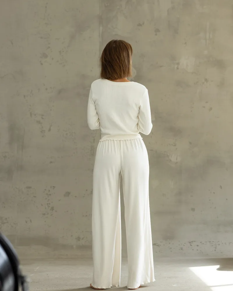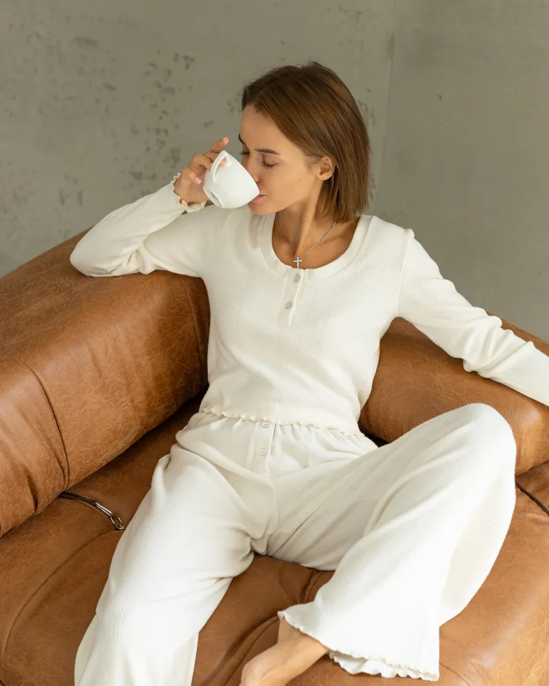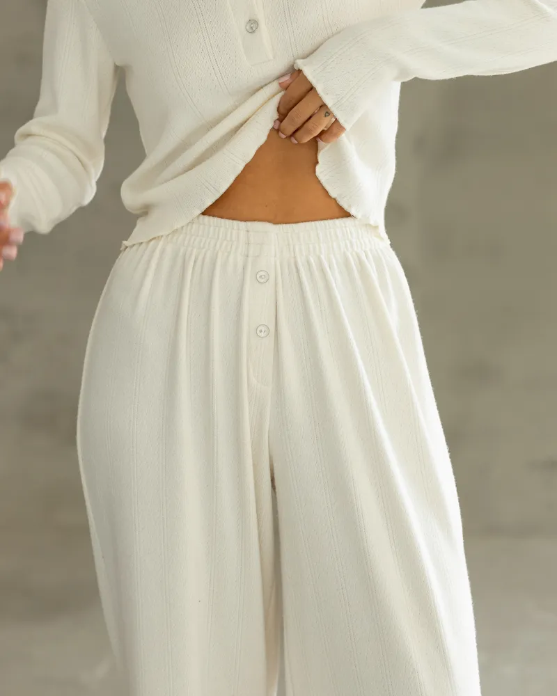 Комплект: кофта з ґудзиками та вільного крою штани на резинці.