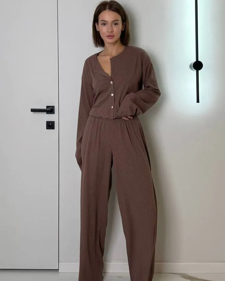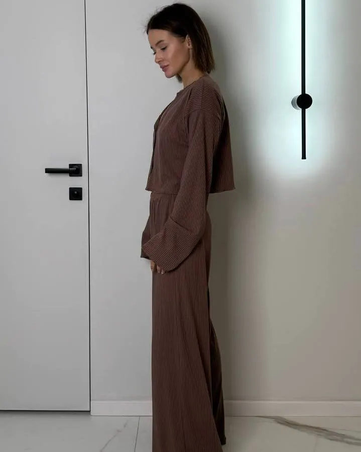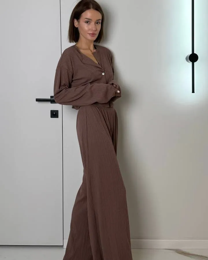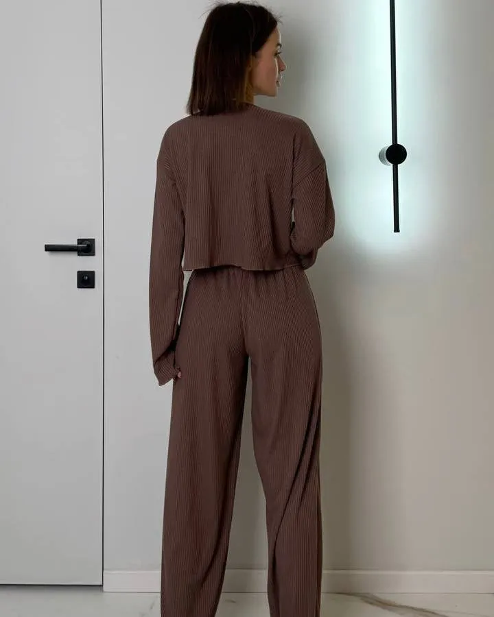 Головна / Каталог / Жінкам / Жіноча піжама / Жіноча піжама "Sandra" трикотаж рубчик Коричневий