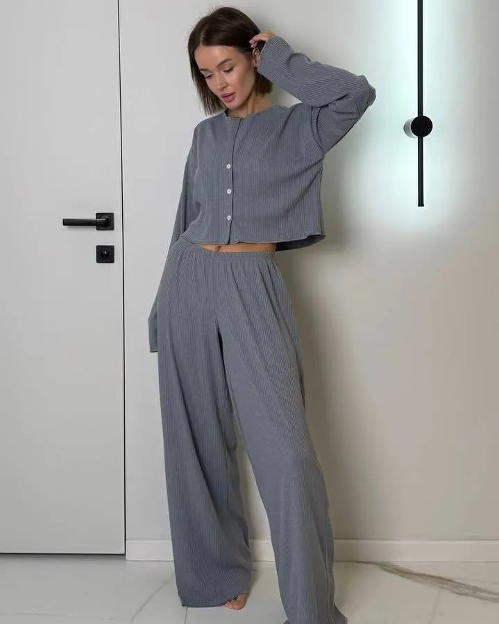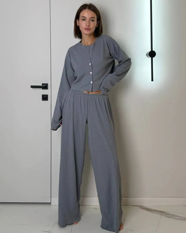 Неймовірно зручна жіноча піжама із трикотажу рубчик.