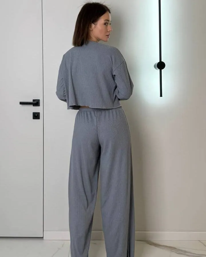 Головна / Каталог / Жінкам / Жіноча піжама / Жіноча піжама "Sandra" трикотаж рубчик Сірий