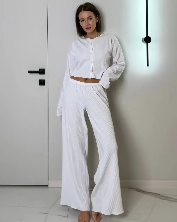 Головна / Каталог / Жінкам / Жіноча піжама / Жіноча піжама "Sandra" трикотаж рубчик Білий