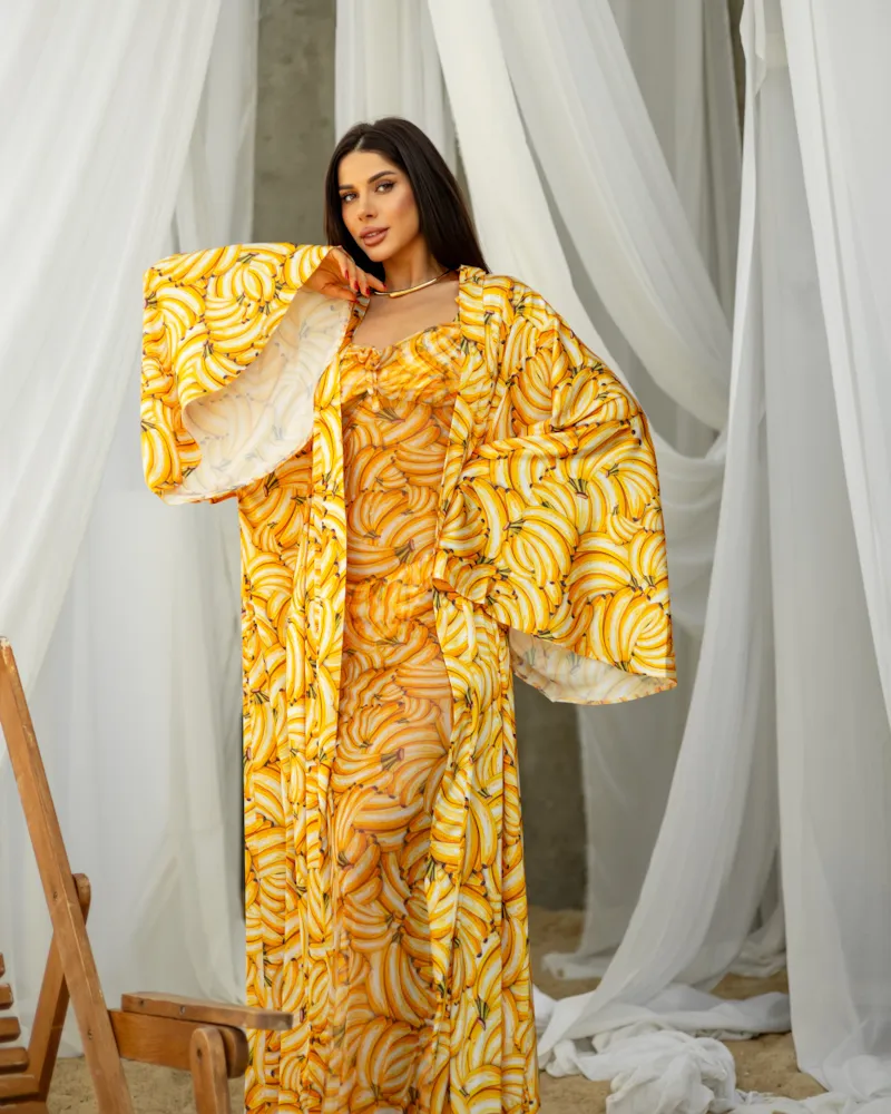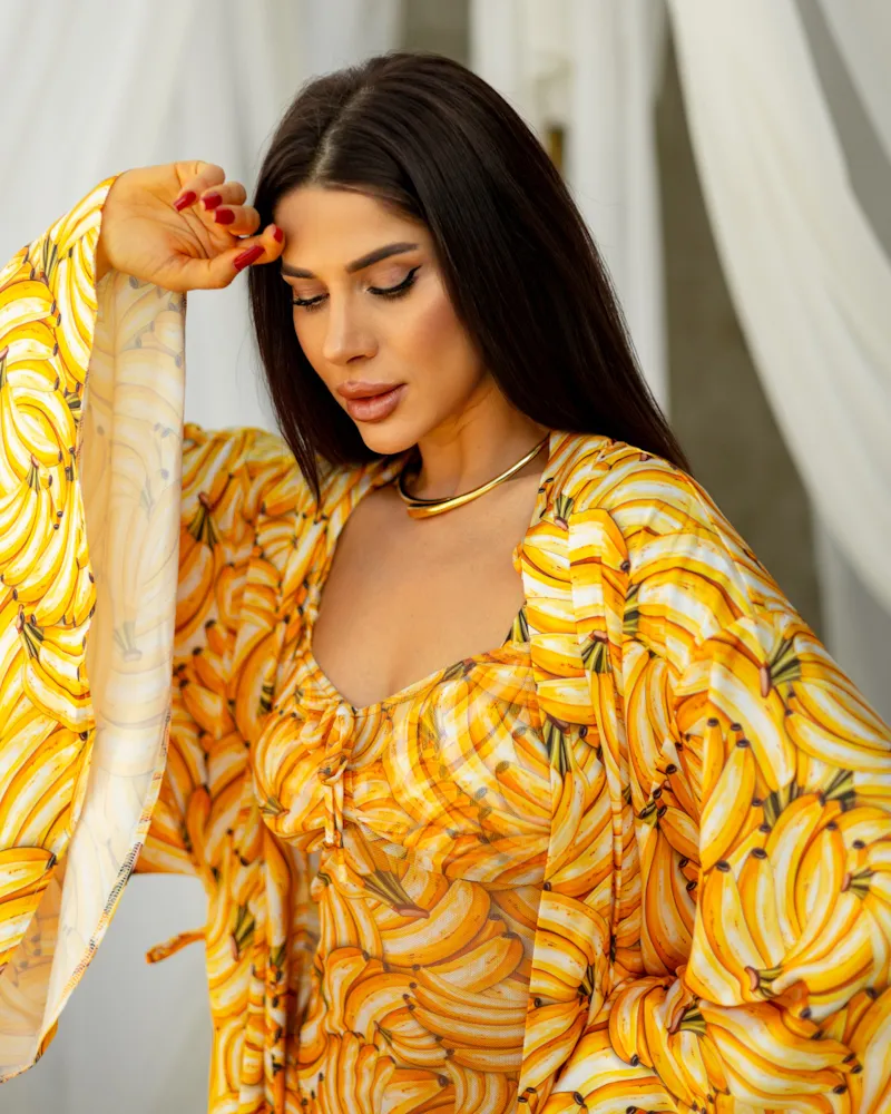 Головна / Каталог / Жінкам / Жіночий костюм / Жіночий комплект "Tropicana" (кімоно-купальник-косинка) тканина італійський шовк Bananas