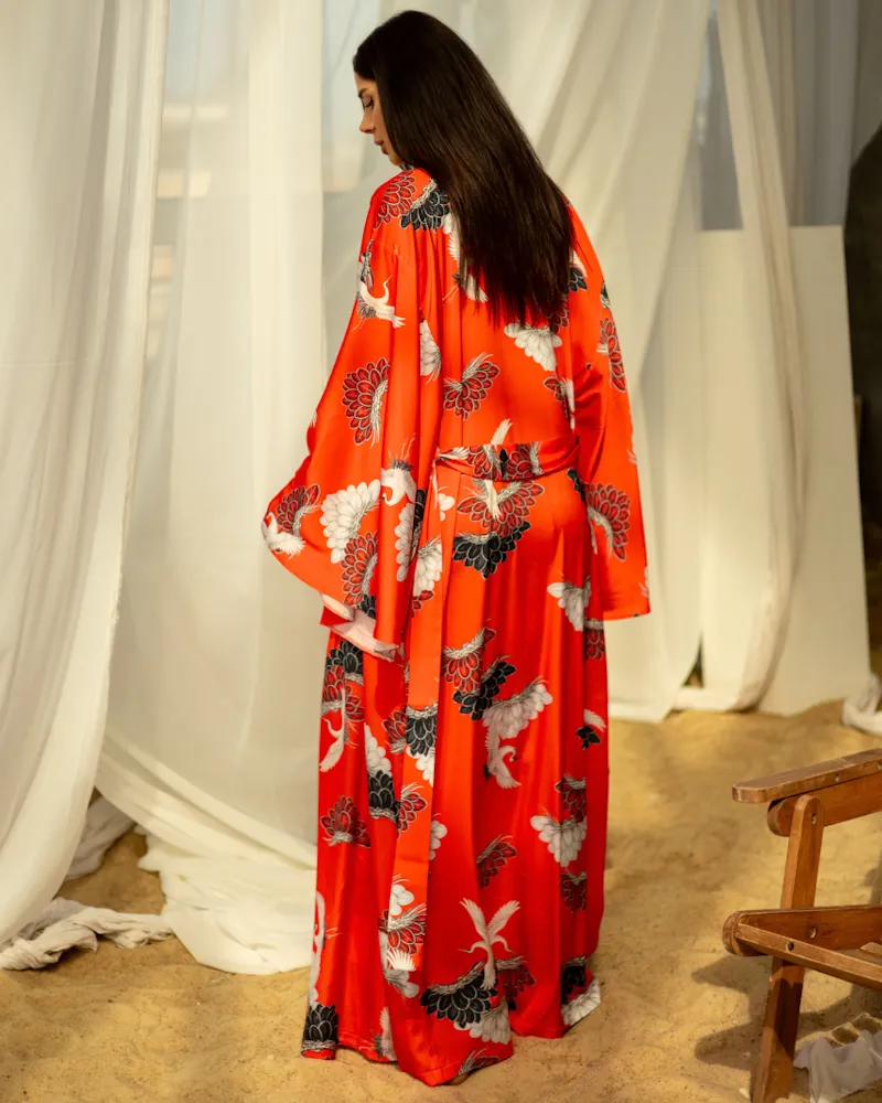 Головна / Каталог / Жінкам / Жіночий костюм / Жіночий комплект "Tropicana" (кімоно-купальник-косинка) тканина італійський шовк Червоний