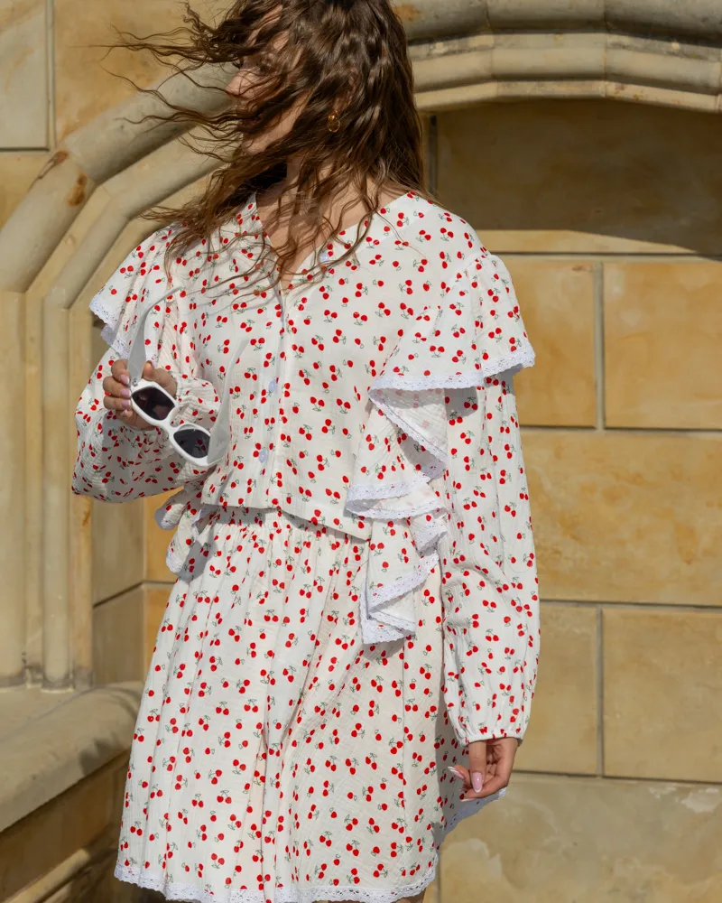 Жіночий костюм (сорочка+спідниця-шорти) "Lexy" Вишні