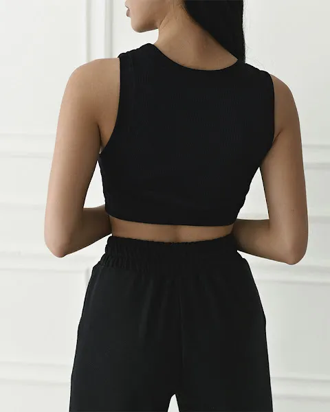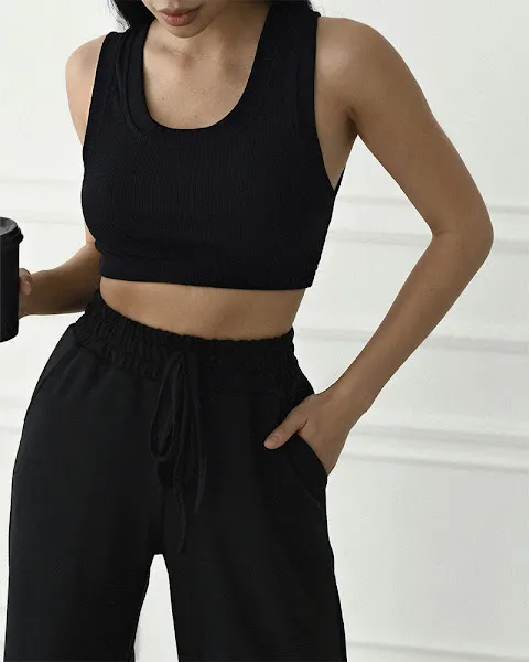 Стильний кроп-топ із трикотажу в рубчик, який доповнить будь-який образ.